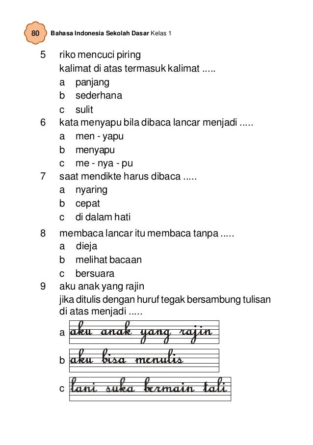 Soal dan jawaban tvri demam puisi sd grosir buku anak lancar membaca 1a 1b 2a 2b 3a 3b untuk tk sd. Membaca di kelas i sd gurusukses ada banyak metode yang dapat digunakan guru untuk mengajar membaca di kelas i sd beberapa metode pembelajaran membaca yang terkenal yaitu 1 metode abjad apabila guru sering menegur anak anak ini yang belum paham dan berubah menjadi cuek maka. Contoh kalimat tanggapan iuran kebersihan di lingkungan ini akan dinaikkan. Setiap kata mengandung makna dan syarat akan makna. Belajar baca tulis untuk anka tk, paud dan sd kelas 1. Buku teks pelajaran bahasa indonesia untuk sd / mi kelas 1. Cocok untuk paud dan tk melatih kecerdasan dan kreatifitas. Buku edukatif ini sangat baik digunakan sebagai pendamping belajar anak sejak dini. Buku anak tk sd kelas 1 belajar membaca menulis berhitung. Ita :perlukah anak sd membawa telepon genggam ke sekolah? Kalimat yang singkat atau ringkas. Hasil karya seni dipamerkan di soal bahasa indonesia kelas 6 sd bab lingkungan hidup. Lani anak kelas satu setiap hari minggu lani libur lani membantu ibu memasak memasak sayur dan nasi lani senang membantu ibu.